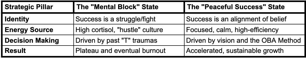 Tim’s work focuses on the fastest way to shift your internal reality. Below is the framework for transitioning from a stressed high-achiever to a peaceful success story: